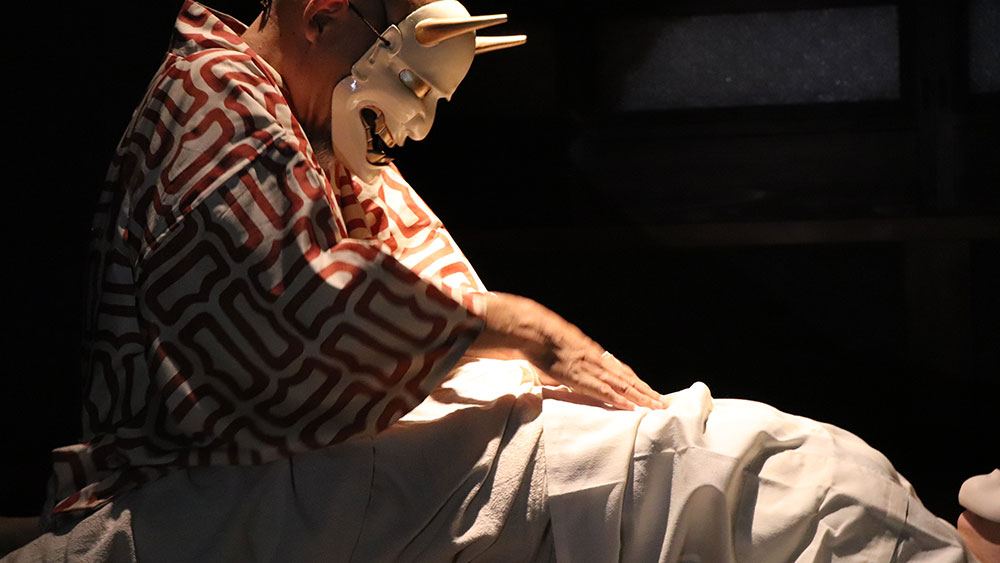 ※能における「般若」は、単なる怪物ではなく、「強すぎる想いゆえに、鬼にならざるを得なかった女性」の悲しい姿を象徴しています。般若の正体は、もともとは普通の人間(女性)です。愛する人に裏切られ、届かぬ想いに悶えたりする中で、激しい「嫉妬」や「執念」が抑えきれなくなって、その情念が鬼へと変貌した姿です。その後、鬼は祈りによって調和を取り戻し、結末では静かに去っていく物語です。 |